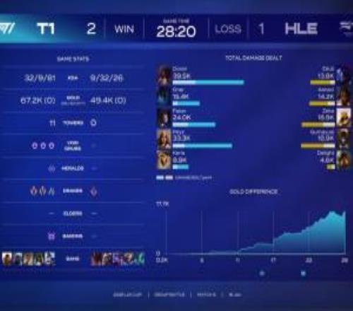 體育資訊1月16日稱 LCK杯T1二比一擊敗HLE,賽后決勝局數據面板,Doran阿卡麗打出的全局傷害大于Zeka沙皇+Gumayusi燼的傷害總和。