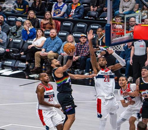 單核帶隊的穆雷,此役面對奇才首發控球后衛二年級秀卡林頓,前兩節火力全開,在受到嚴防死守的情況下,仍然靠著14中9的發揮,其中三分球6投3中,半場就砍下了23分,可惜隊友不在最佳的狀態,尤其是阿隆戈登半場只有4中1的發揮,這也導致掘金半場戰罷,帶著1分的劣勢,回到了中場更衣室。