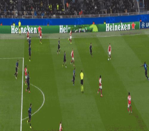 第10分鐘,阿森納在國米的30米區域連續隨意傳球,廷貝爾送出助攻,熱蘇斯打破僵局。