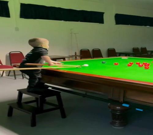 兩歲半的時候,他完成了第一次擊球,從此開始經常練習打球,雖然暫時還不能把斯諾克玩得很溜,但花式臺球已經玩出了一些心得。
