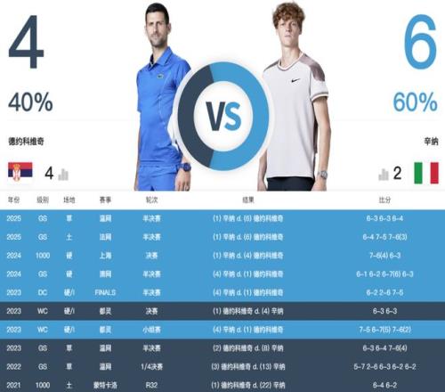25年德約與辛納又在大滿貫半決賽上有過兩次交手,不幸的是這兩次交手德約的機(jī)會(huì)越來越少。特別是溫網(wǎng)半決賽的完勝,讓人們看到了辛納的實(shí)力,也慨嘆歲月的公平與無情。時(shí)間在塞爾維亞球王身上已經(jīng)饋贈(zèng)良多。能在38歲高齡在大滿貫賽場(chǎng)保持如此的競(jìng)爭(zhēng)力,已經(jīng)是不小的奇跡。